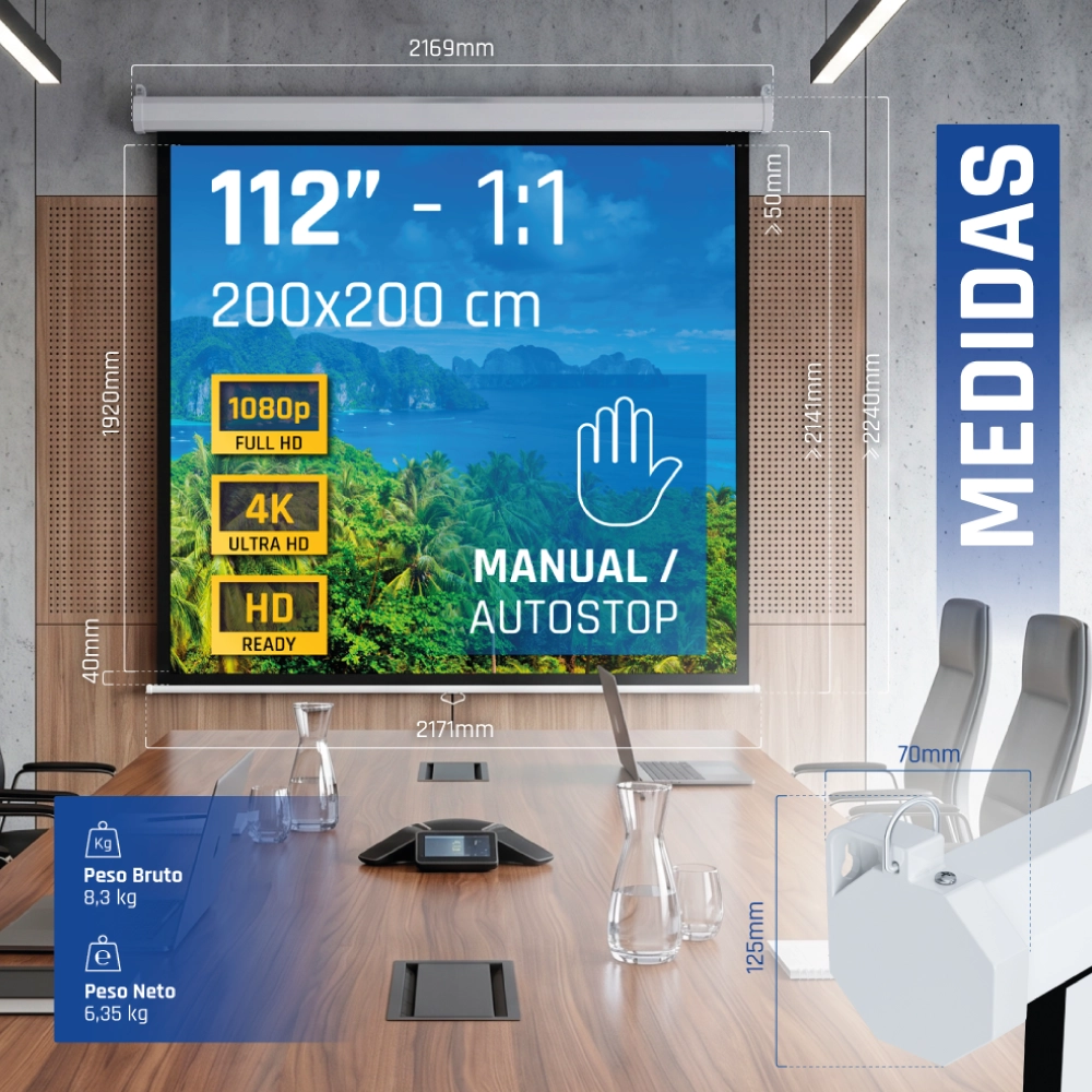 iggual Pantalla manual 1:1 112" 200x200 cm