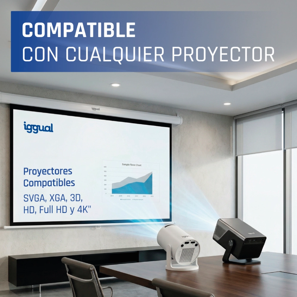 - Ideal para cualquier tipo de proyector, SVGA, XGA, 3D, HD, Full HD y 4K